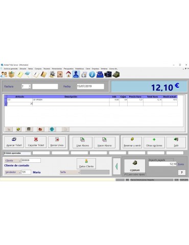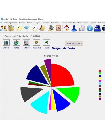 Ambar- 7 comprende todas las áreas de gestión de la empresa: clientes, proveedores, bancos, agentes comerciales, artículos, seguimiento del stock, pedidos, albaranes, facturas de compras, de ventas, ventas de contado, inventarios, seguimiento de mercancías, informes, gestión financiera, seguimiento de los cobros, los pagos, vencimientos...